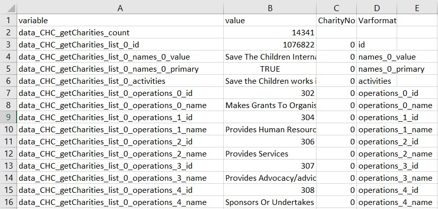 Let’s have a quick look at what we did. The first line of the code captures the number of the charity and the second line captures the name of the actual variable. The script then saves both as CharityNo and Varformat respectively.